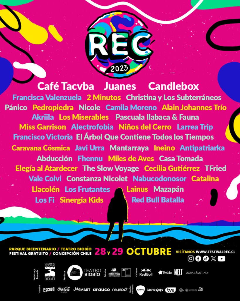 “Estamos muy felices de anunciar este line up que además de posicionarnos como uno de los festivales más importantes de Chile, muestra el compromiso que tenemos con las y los artistas locales, los que fueron elegidos en gran parte por los gremios de la música y las personas a través del Programemos Juntxs. También queremos destacar que una vez más aumenta el número de artistas y bandas lideradas por mujeres, las que este año serán 18. Y, por supuesto, estamos muy contentos de tener un REC 2023 con seis artistas internacionales”, comentó Francisca Peró, directora ejecutiva del Teatro Biobío.