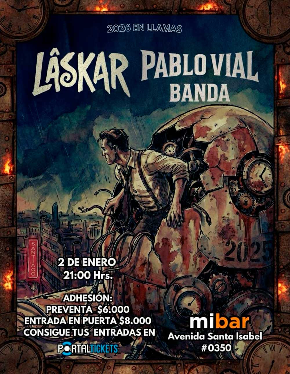 Pueden disfrutar de Laskar este próximo 2 de enero en MiBar. Las entradas ya se encuentran disponibles a través de portaltickets @portaldisc , con un valor de $6.000 en preventa y $8.000 el día del evento.