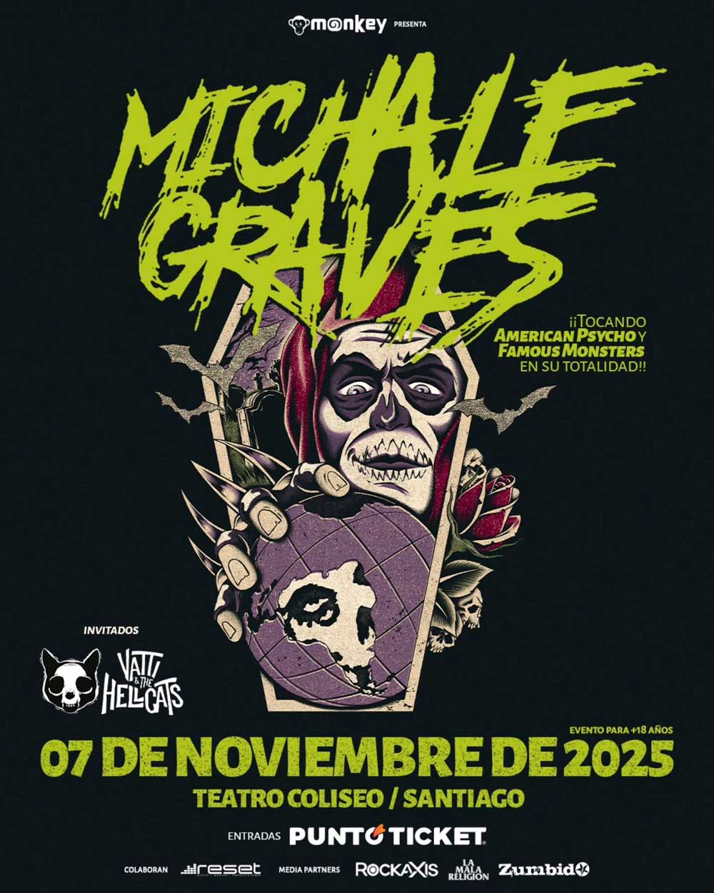 En un país donde el público punk y metalero se distingue por su fidelidad, Michale Graves ha sabido ganarse un lugar especial. Chile no solo lo recibe, lo celebra. Y este nuevo concierto promete ser otra noche de culto, una de esas donde el horror, el rock y la nostalgia se funden en un mismo grito.