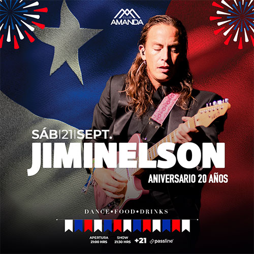 Este sábado 21 de septiembre, Club Amanda cerrará las Fiestas Patrias con broche de oro junto a la aclamada banda chilena Jiminelson. Con su inconfundible estilo que mezcla rock, blues y sonidos alternativos, Jiminelson promete una noche inolvidable para despedir esta semana de celebraciones.