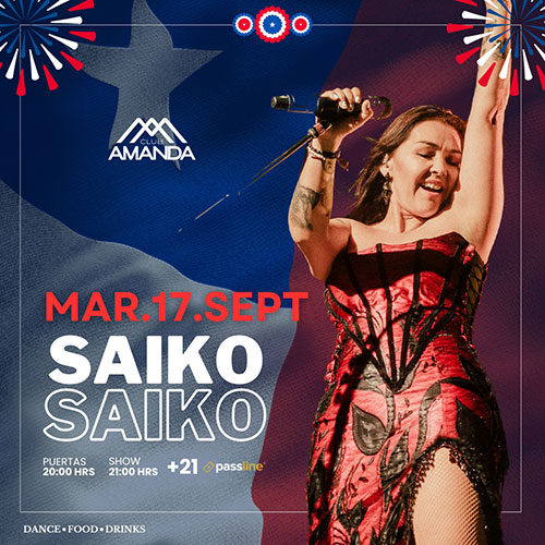 Club Amanda esta ya preparada para reunir una amplia gama de artistas nacionales en estas fiestas patrias; una semana llena de música y tradición patria, partiendo por una banda icónica del rock chileno como lo es Saiko, pasando por Pedro Piedra (cuyo nuevo álbum salió esta semana), Matanza y terminando con Jiminelson